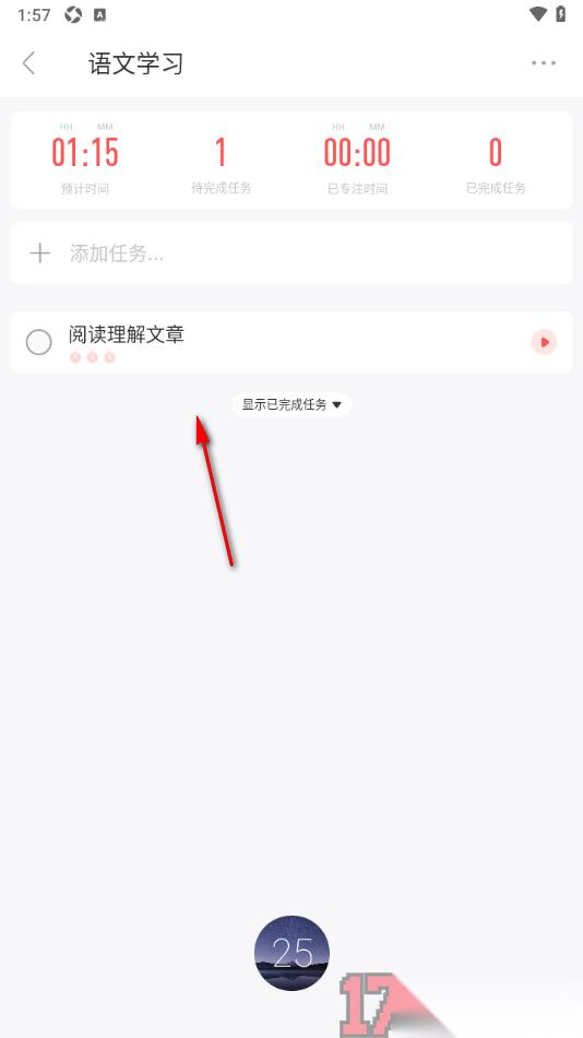 4.在打开的清单管理页面中,需要点击【添加任务】窗口,输入自己想要创建的任务,然后选择番茄数和标签即可完成创建。