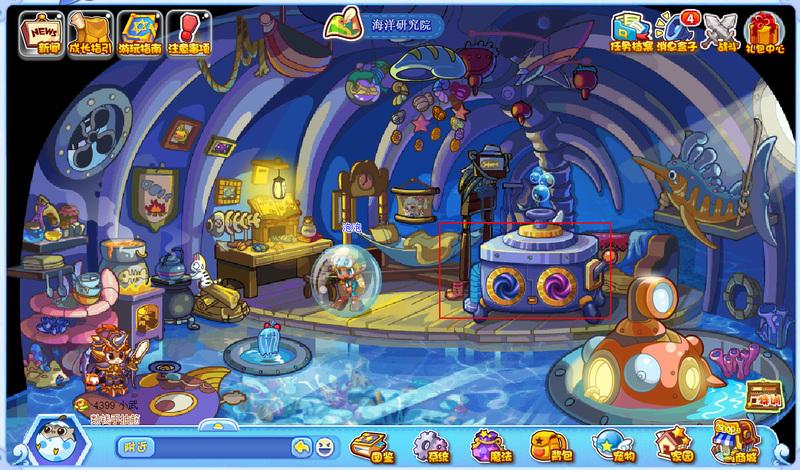 1.玩家进入游戏后,到达场景地图海洋研究院,然后点击图示图标。