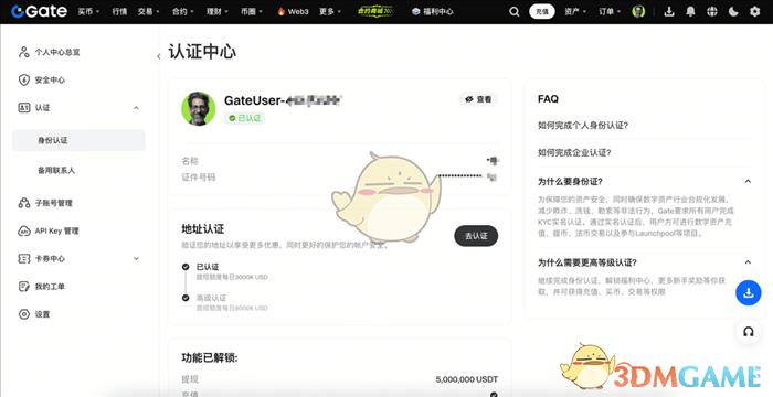 完成安全验证后,进行身份认证(KYC认证):选择个人或企业认证,按照指示填写身份信息并提交。