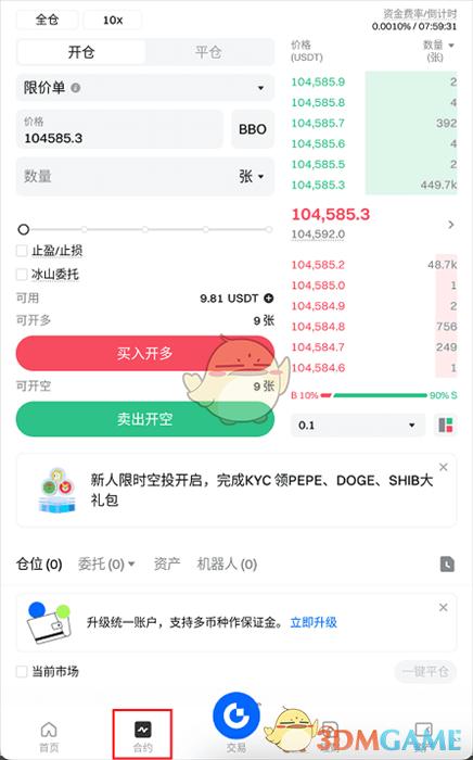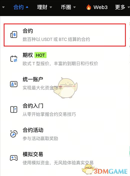 点击导航栏中的【合约】,进入合约交易页面。完成以上步骤后,您的合约账户将成功开通。