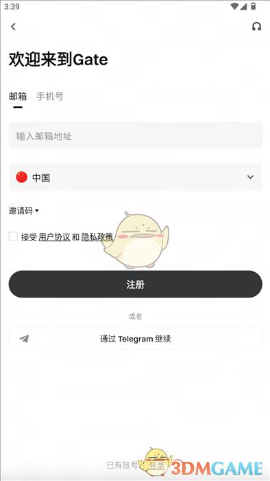 打开Gate官方APP点击【注册/登录】按钮,进入后点击【注册】进入账户注册流程。选择使用电子邮箱或手机号码注册。输入8位密码,勾选用户协议并点击【注册】。填写电子邮箱验证码或短信验证码,完成注册。