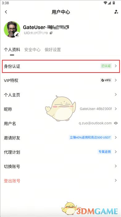 完成安全验证后,切换到【个人资料】tab,进行身份认证(KYC认证)。选择个人或企业认证,按照指示填写身份信息并提交。