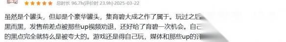 各大游戏论坛里玩家口碑很实在,不少体验过的玩家都给出了好评:有玩家打满星,夸它风景绝、战斗爽,还分享了画面卡顿的优化小技巧;还有玩家直言它是 “集育碧大成的豪华罐头”,吐槽曾被 UP 主劝退,实际玩后才发现所谓黑点是被夸大的。