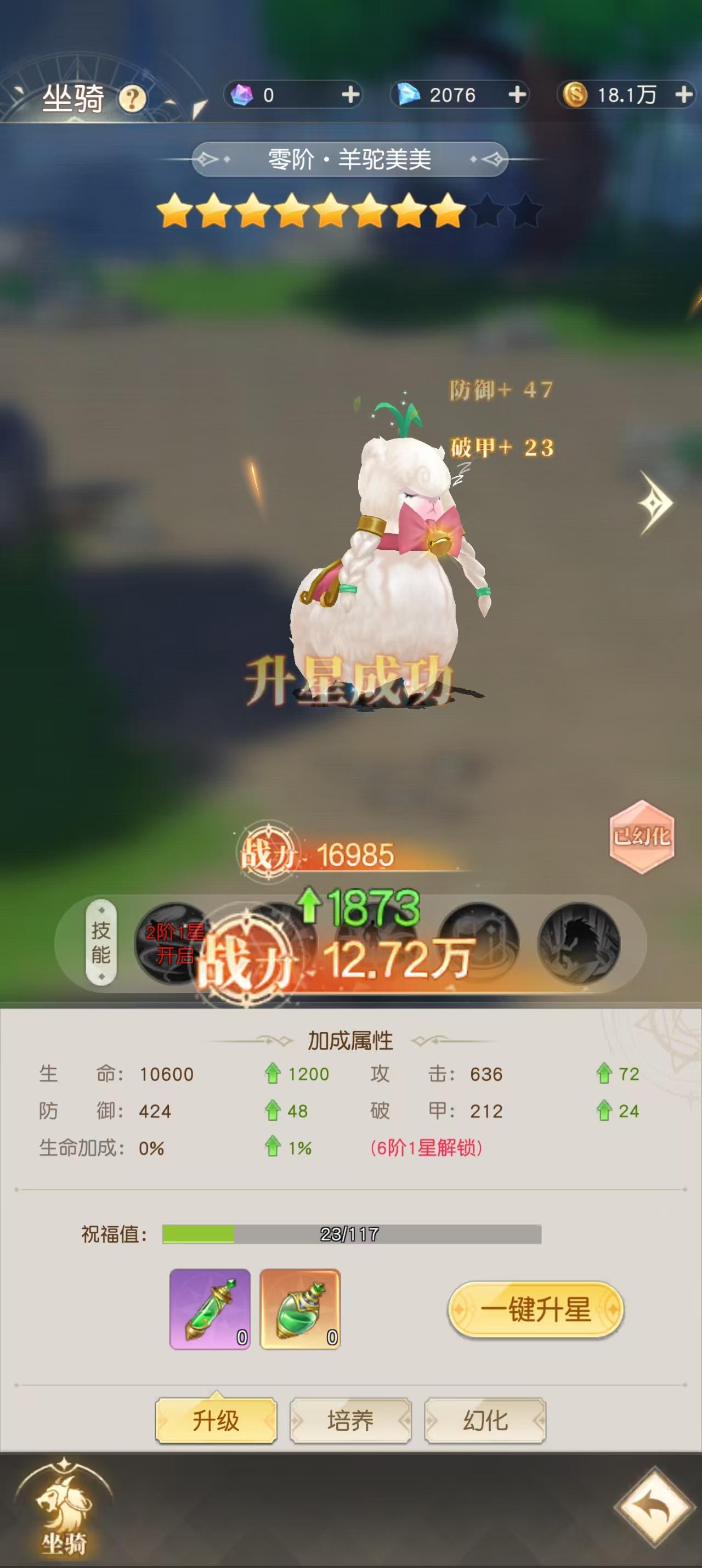 对于很多玩家来说,幻化是《星神纪元》坐骑系统里最具有个性化的一个模块。幻化系统可以让玩家在保持当前坐骑所有数值、星级、培养属性的基础上,把坐骑的外观变换成自己想要的任何已解锁的坐骑形象。不论是怀念第一次遇见的那头可爱的羊驼美美,还是想象那些稀奇古怪又充满独特性的限定酷炫坐骑,幻化系统都能够很好地满足玩家对于收藏和审美等各方面的需求。