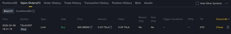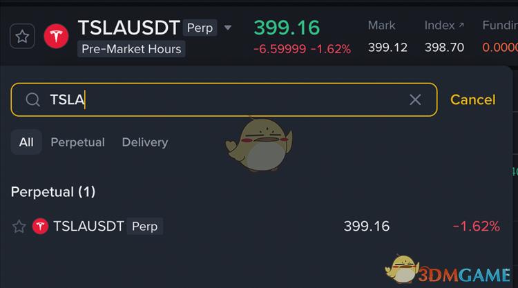 2. 展开下拉菜单,搜索 TSLAUSDT。