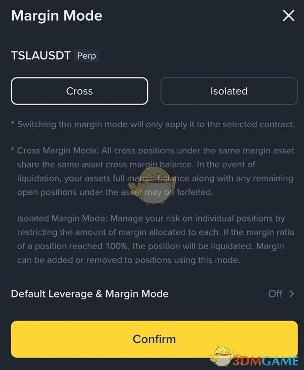 逐仓保证金模式:将每个仓位的风险限定于特定资产,实现单个仓位的独立管理。因此,您的 Tesla 仓位不会受到其他仓位波动的影响。