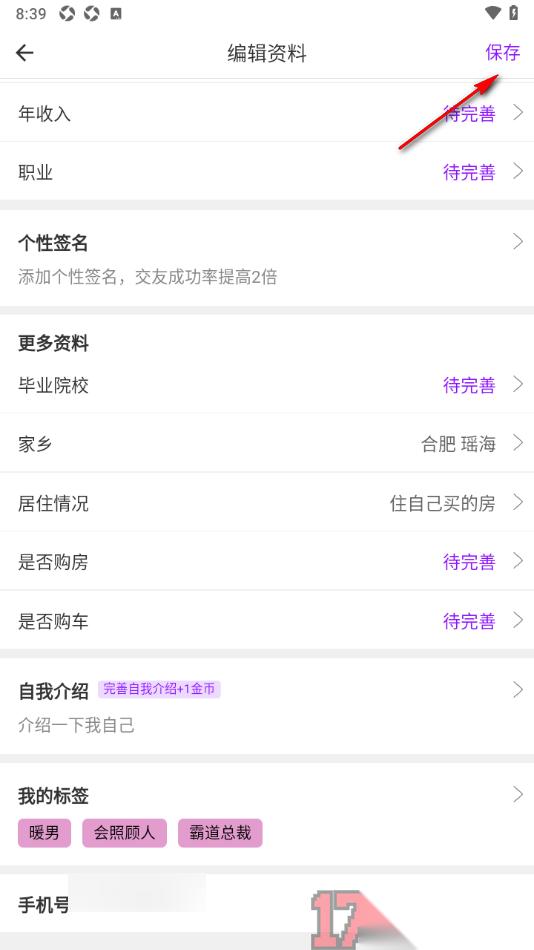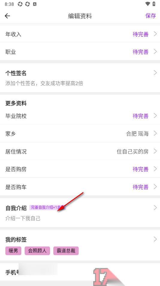 通过上述的步骤教程用户在操作牵友APP这款软件的过程中可以设置一下自我介绍,将自己的性格特征、兴趣爱好等添加进来,其他人在访问你的个人主页时才能更好的了解你,从而选择和你交朋友、互动聊天等,并且还可以设置我的兴趣标签、购房情况等。