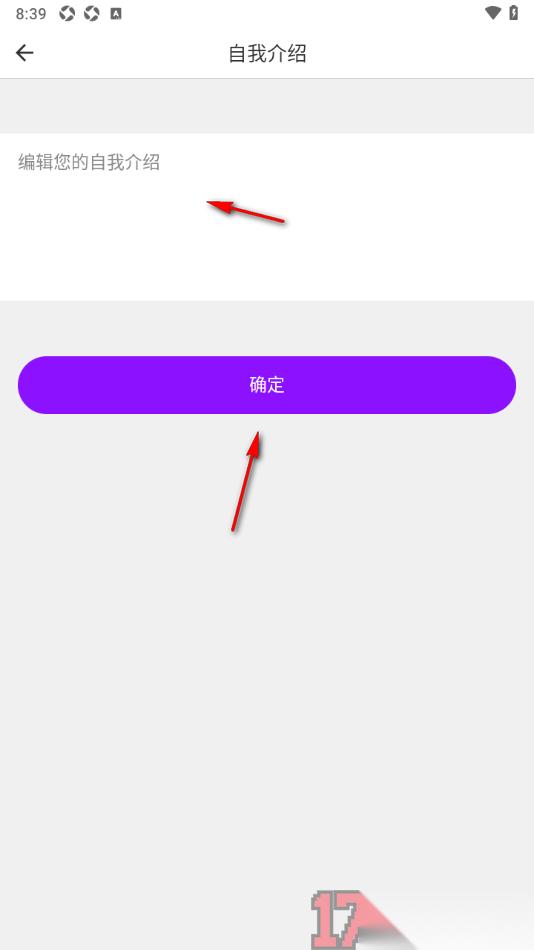 4.之后在打开的自我介绍页面中,输入自己想要编辑的内容,然后点击【确定】按钮即可保存编辑的内容。