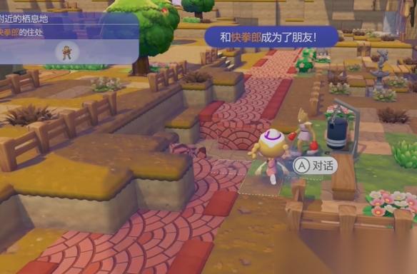 2、完成格斗栖息地的建设,与入驻的快拳郎对话接取探宝器任务。
