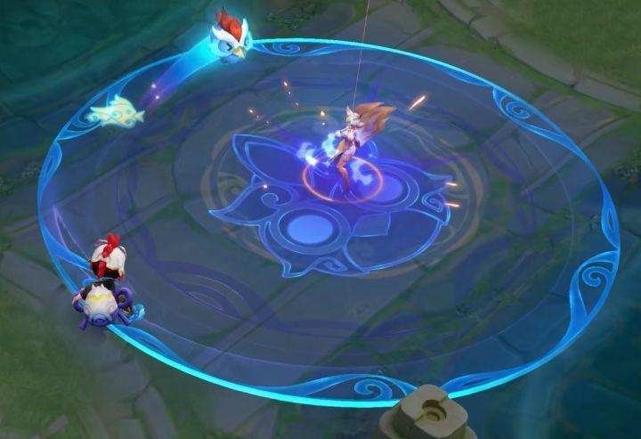 【班班快跑】以清新蓝白为主色调,巧妙融入国风小鸡主题,辅以金、红点缀,整体色彩明快,完美契合鲁班七号活泼搞怪的个性: