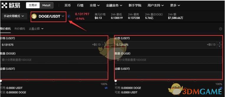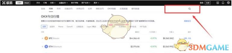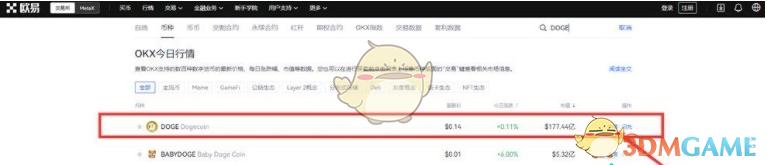 1、注册登录欧易okex,搜索狗狗币英文简称DOGE