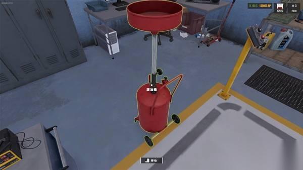 更换机油需要使用的工具,使用举升机举起车辆以后,点击废油桶移动到车底,将放油螺栓打开,把油放光,之后可以进行更换机油滤清器和重新填满机油操作。