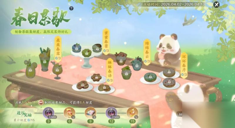 得闲饮茶,闲趣生发,在美好的四月来一场甜美的茶歇吧!4月2日-4月13日05:00,活动期间前往【活动-春日茶歇】制备茶歇甜点,收集甜度达指定数量即可获得问影晶石、天衣礼券、绘彩宝匣及月漩珠好礼!