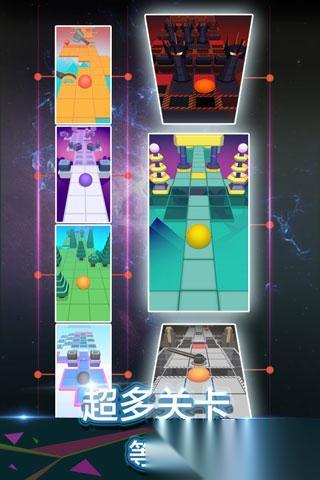 本作为十分酷炫的3D音乐跑酷手游。玩家需要通过左右滑动屏幕来控制小球,使之在充满障碍的立体赛道上不断前进,躲避各种机关,最终到达终点。每个关卡都有特别的主题,比如森林、山川、未来城市等。不同的场景会配有不同的障碍和专属音乐,伴随着节奏和跑酷的动感,眼前的画面也会变得十分绚丽。