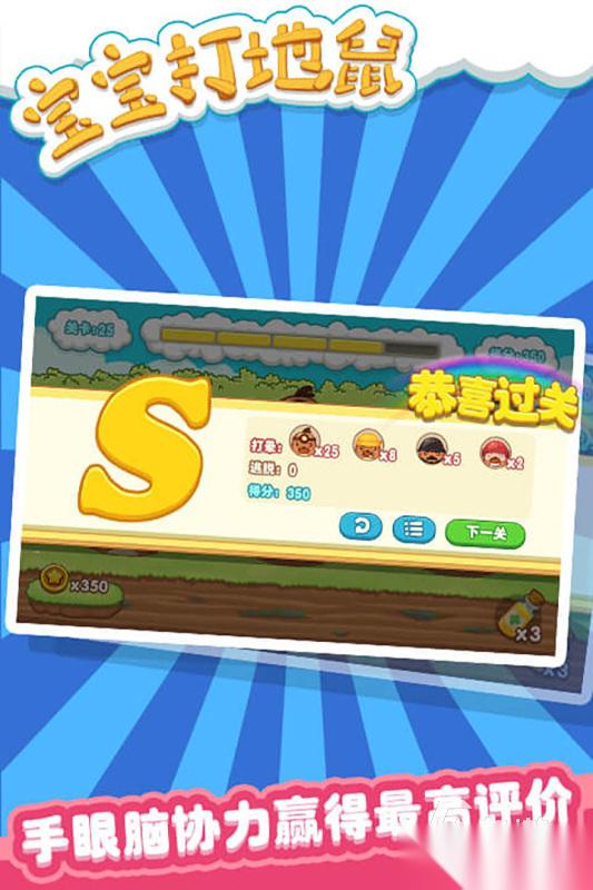 线下的打地鼠游戏很受孩子们的喜欢,本作即是把线下的打地鼠搬到手机平台。游戏会设置画面简洁美观的场景,场景中包含各种树洞,而色彩鲜艳的可爱地鼠则会从树洞中随机冒出,此时玩家就要眼疾手快,趁他们出来的时候快速点击屏幕进行击打。十分考验玩家的专注能力。
