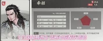 首先,牵招自身具有不错的防御和控制能力。在队伍搭配上,可以考虑与能提供输出爆发的武将组合。