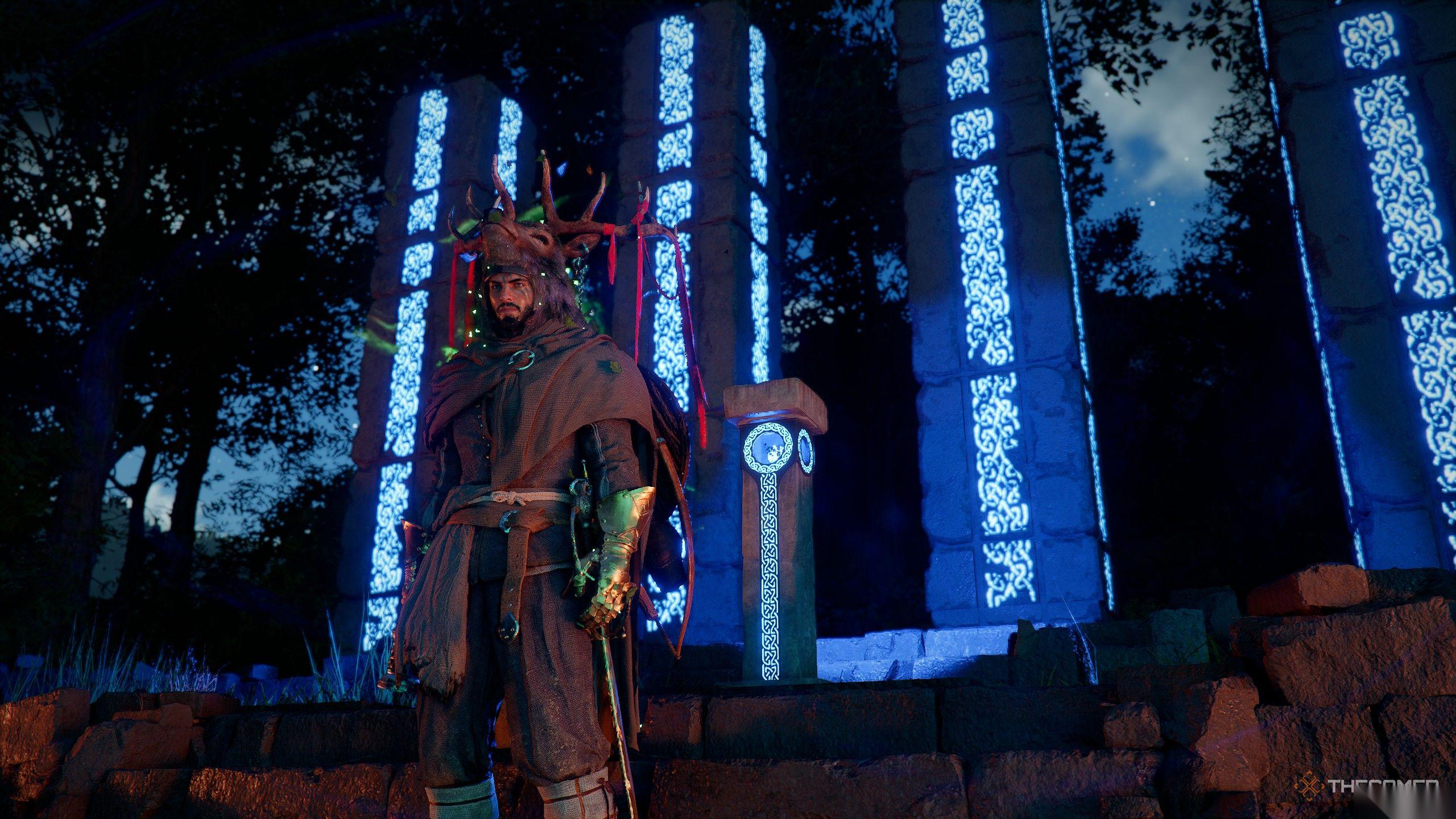 一条路径的尽头会生成一个深渊神器,它将给你另一个技能点用于分配。要继续探索深渊,从你拾取神器的位置转身,前往岛屿另一侧的三角形大门。对讲台使用“公理之力”旋转开关,升起多个石制平台,你可以通过这些平台穿过间隙。