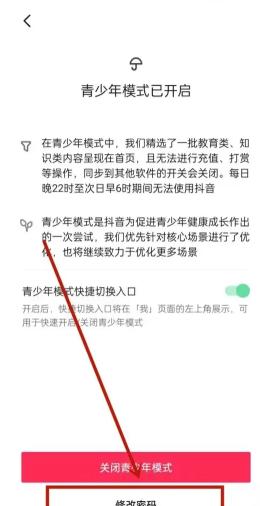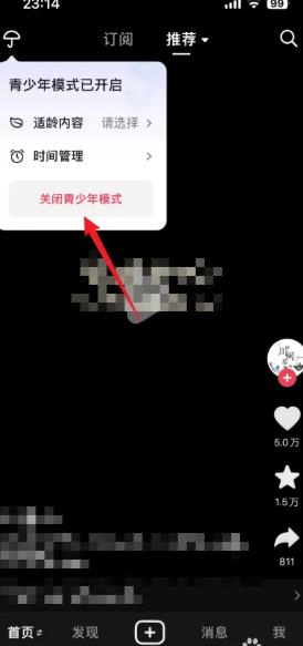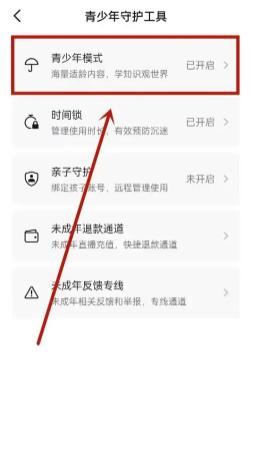 2.进入到青少年模式已开启页面,点击“关闭青少年模式”。