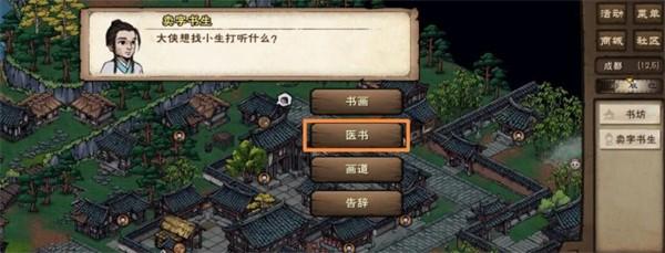 3、然后向卖书先生(12,5)打听「医书」,剧情后选择「药师」,再向葛药师(16,14)打听「五色梅」。
