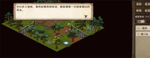 5、在峨眉密林(9,8)→(6,5)触发剧情,选择「开始翻找」,出现「丹红小花,叶纤长而细」时选择「就是你了」,获得「熊掌」、「琼英花」。
