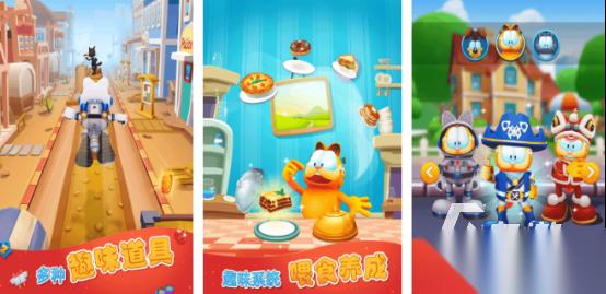 卡通的加菲猫将活灵活现的呈现出来,在跑酷玩法上又融合了很多养成的玩法,操作方式相对来说特别简单,只要通过向左或者是向右跳跃的方式,就可以及时躲避各种沿途呈现出来的动态障碍物,其次还有上百种不同的菜品等大家来喂食,在跑酷的过程中,沿途也会有大量的材料等大家来收集。只要占为己有,就可以培养出自己精美的宠物类型。