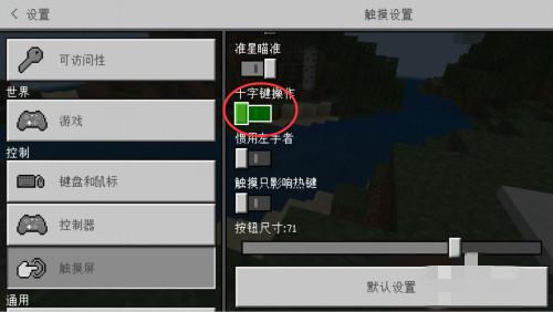 我的世界从十字键改成摇杆操作方法是:打开游戏进入到设置的界面,找到触摸屏按钮,点击选项,之后点击十字键按钮切换,可以把按钮尺寸修改成自己最舒服的大小。