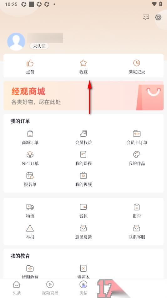 2.在打开的页面上用户可以查看到顶部位置显示的【收藏】选项,点击打开该选项即可进入到操作界面中。
