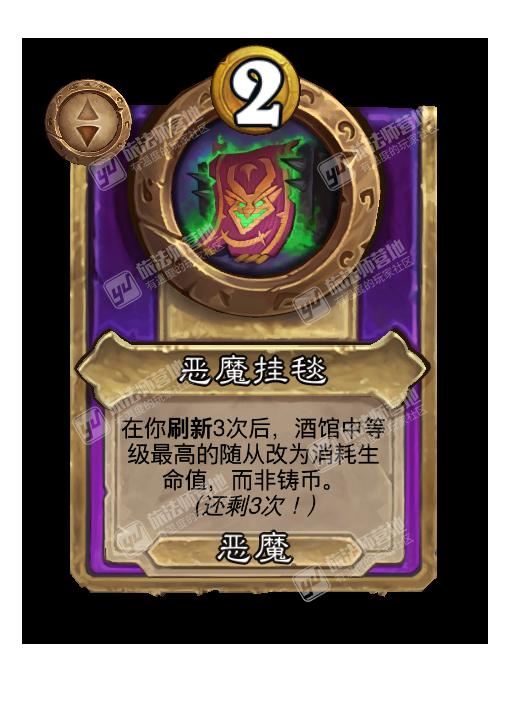 炉石传说酒馆战棋马上要进入新赛季,对一些英雄和随从进行了平衡,也新增了很多饰品,比如恶魔挂毯,那么炉石传说酒馆新饰品恶魔挂毯效果是什么?下面就给大家带来炉石传说酒馆战棋新饰品恶魔挂毯效果介绍。