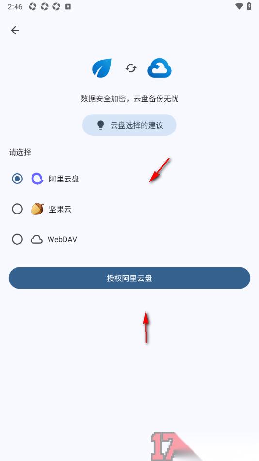 5.不过需要确保用户已经绑定了云盘账号,如果没有绑定会弹出一个绑定窗口,选择一个云盘绑定之后即可同步操作。