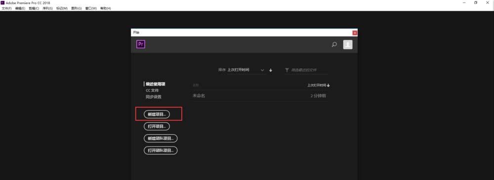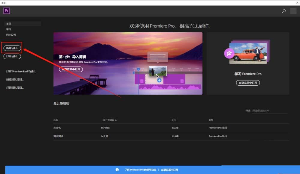 2、打开PR之后,我们在欢迎界面里面进行创建一个项目,为接下来的设置做准备。