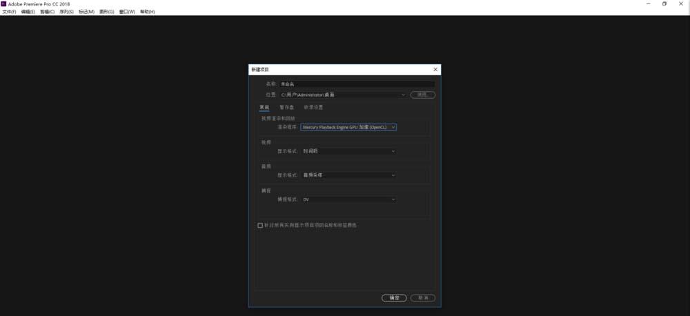2、在新建项目弹窗中一般都会保持默认选项,直接点击下方的【确定】按钮,建立PR项目。