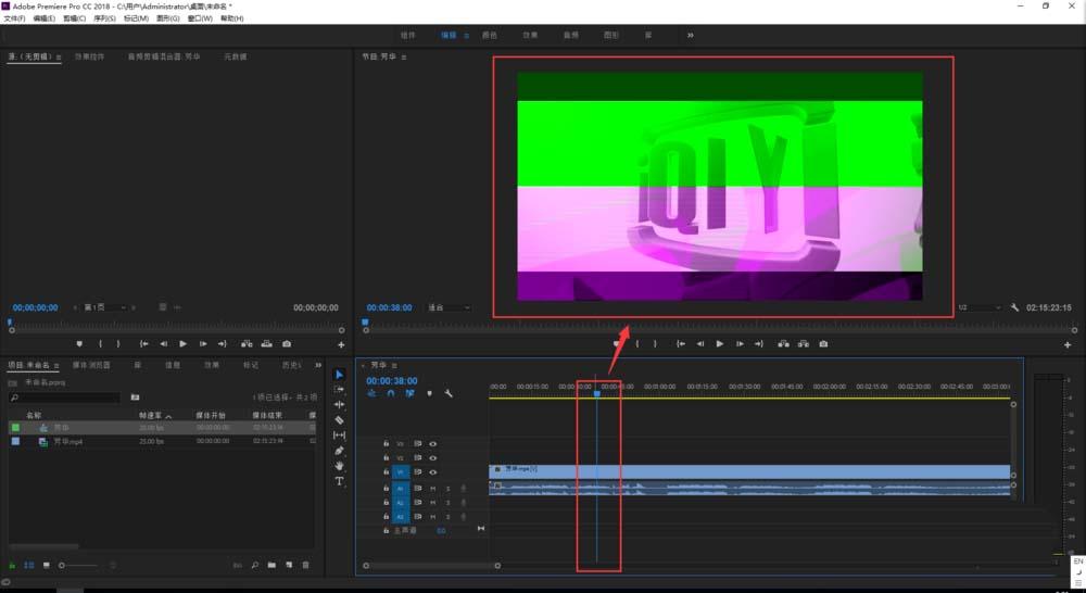 5、这时候我们有的朋友会发现,为什么右上角的预览视频花屏了?是不是Premiere软件有什么问题?还是电脑坏了?其实都不是。