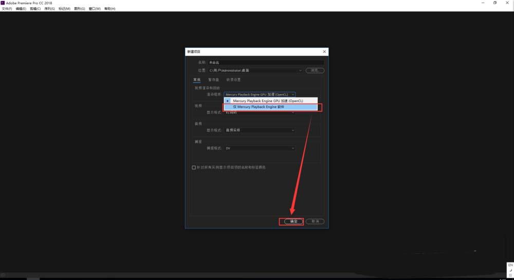 7、最简单的方法就是删掉之前建的项目,重新建立一个新的项目,在新建项目窗口中,把渲染程序修改为【Mercury playback Engine软件】,再建立项目。