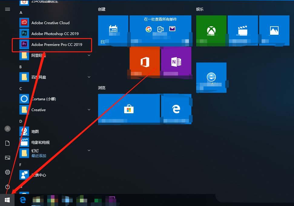 1、首先我们打开我们的PR软件,在开始菜单,程序里面找到PR软件,进行打开,我这里以win10演示为例。