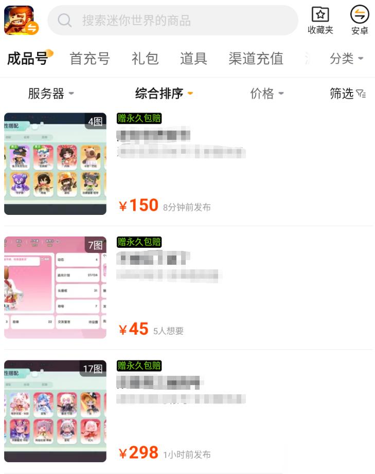交易猫平台游戏覆盖面非常广,包含了市面上超过6000款游戏,可以说是无所不包。像迷你世界这种游戏就不但包含成品号,还有首充号、礼包等不同选择。平台累计服务超过7000万玩家,并长期保持100万以上的在售商品,几乎可以满足玩家全方位的需求。想要使用交易猫也非常方便,安卓用户可以直接点击上方按钮下载,苹果用户浏览器搜索交易猫主页也行,APP或者网页都能体验到交易猫全部功能。