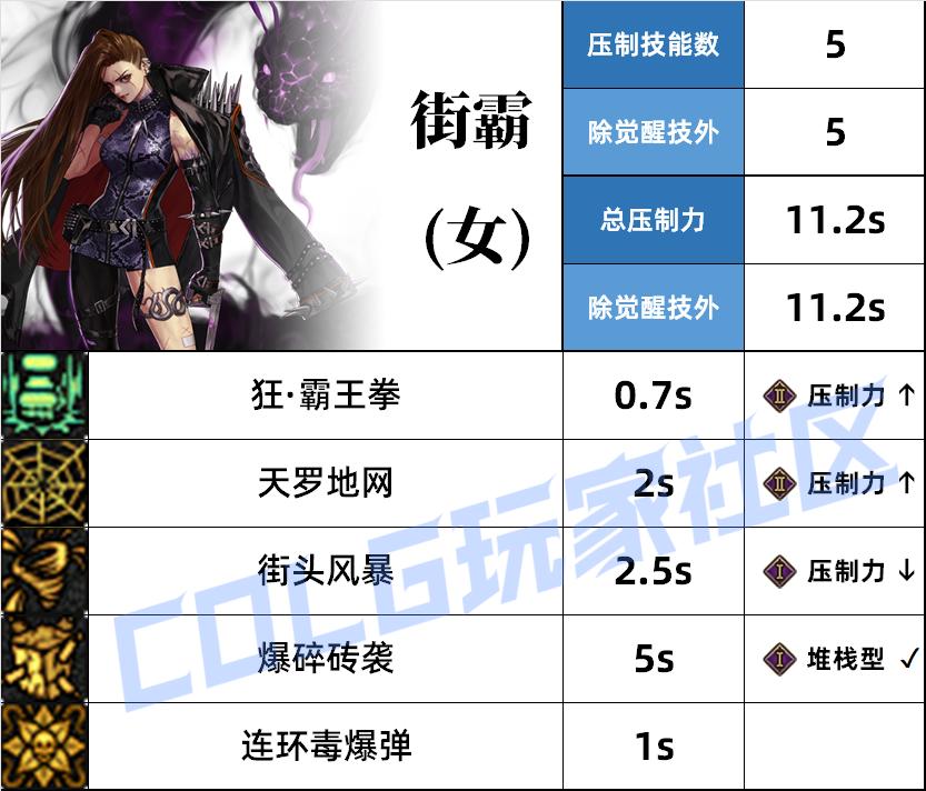 → 技能本身的压制力会因VP选择而产生变化的将会在表格后方标记。