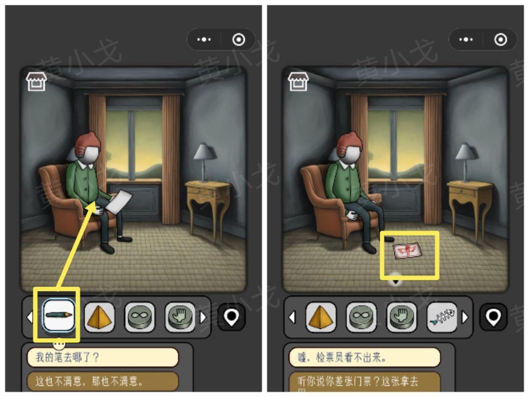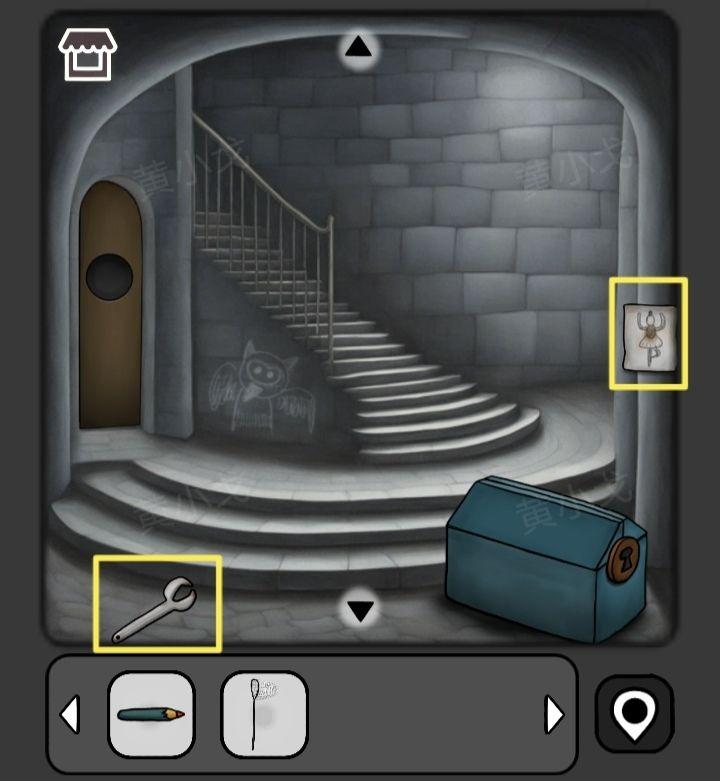 12.拾取墙上的【蓝色按钮】和窗台上的【纸】