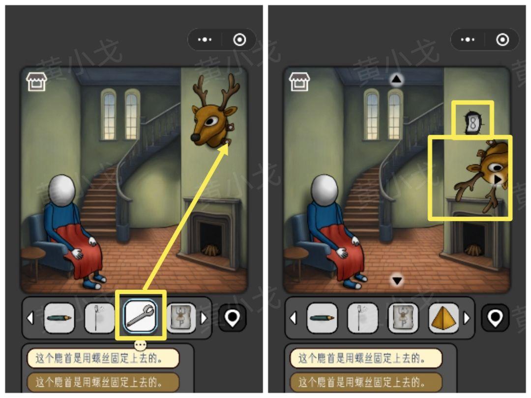 5.用【扳手】拆下鹿首上的螺丝钉;打开暗格,获得【纸条】和【鹿首】