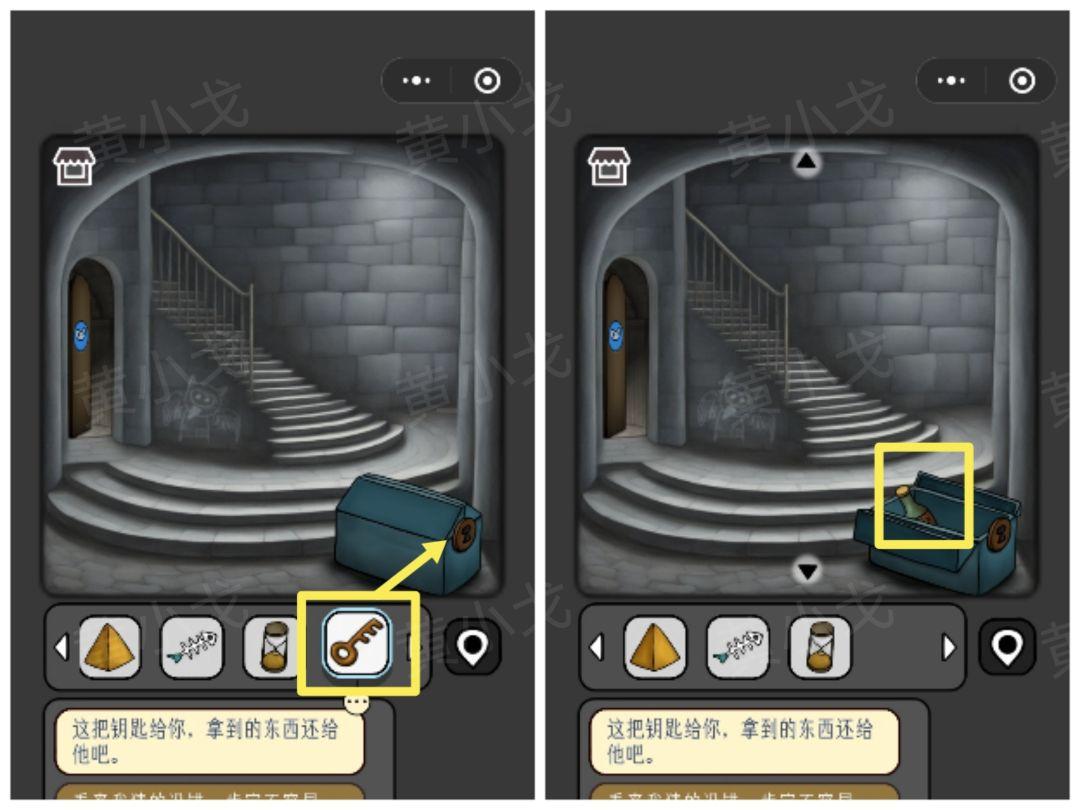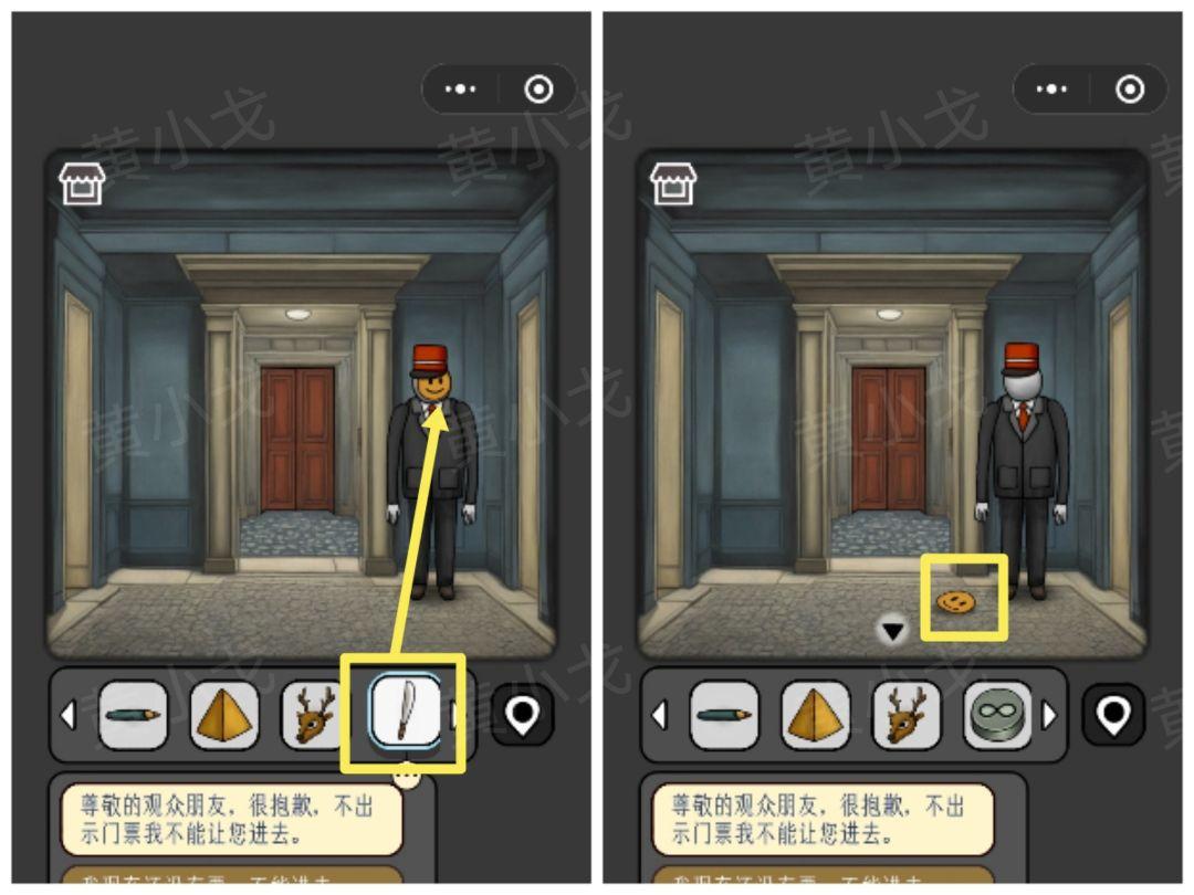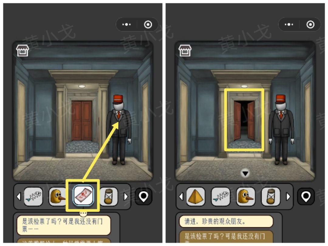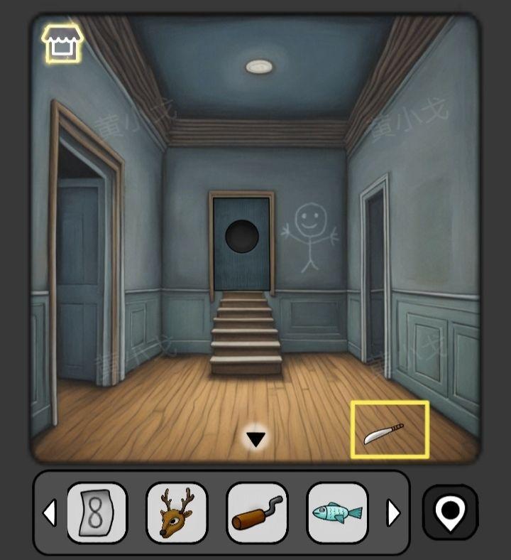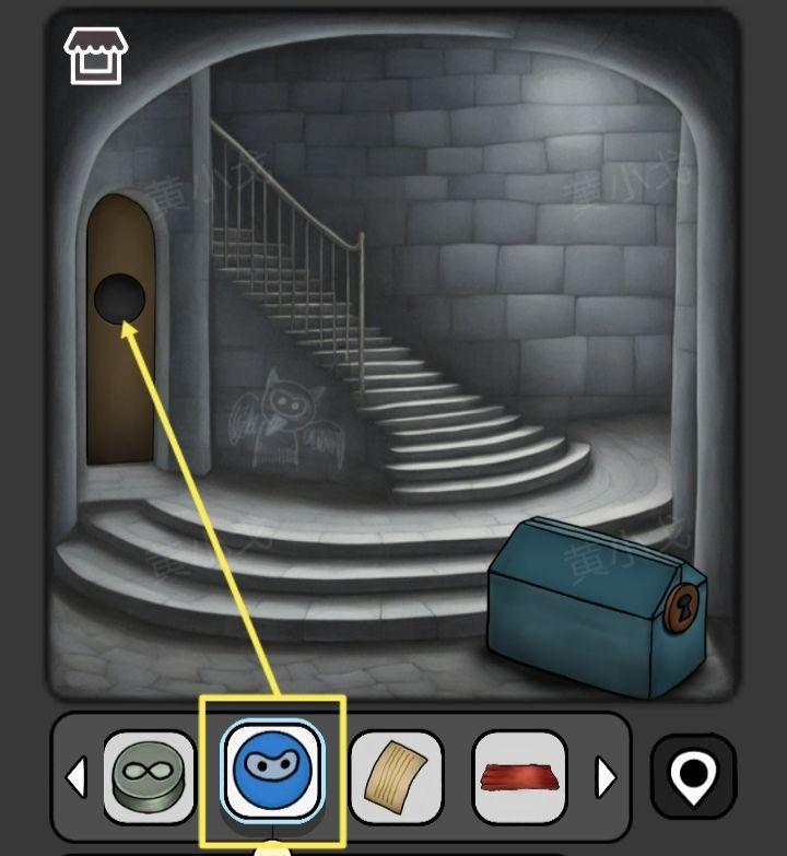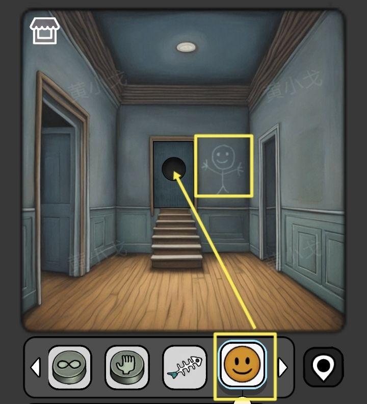 15.根据门旁的笑脸图案,把【笑脸】放入门上的凹槽中,打开门