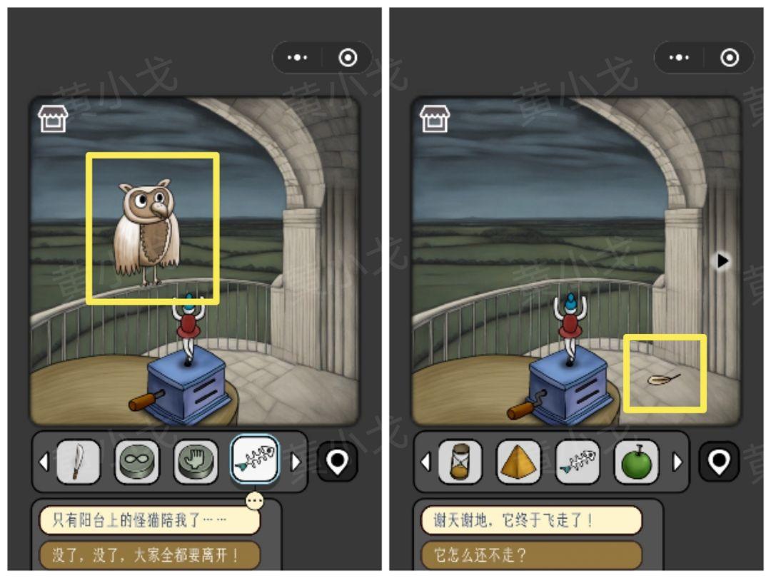 21.多次点击猫头鹰以驱赶猫头鹰,拾取掉落的【羽毛】