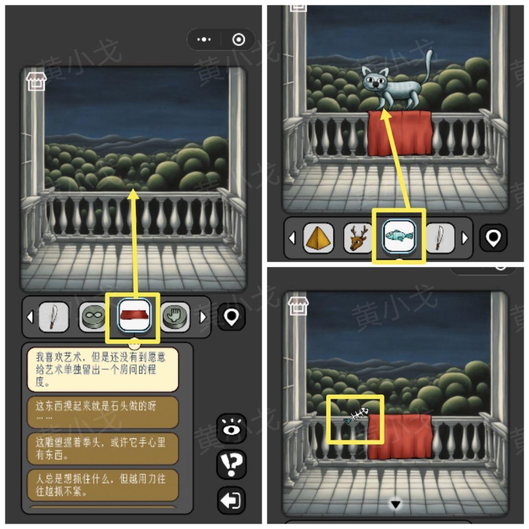 25.把【餐布】铺到阳台护栏上,拿【鱼】喂猫,获得【鱼骨头】