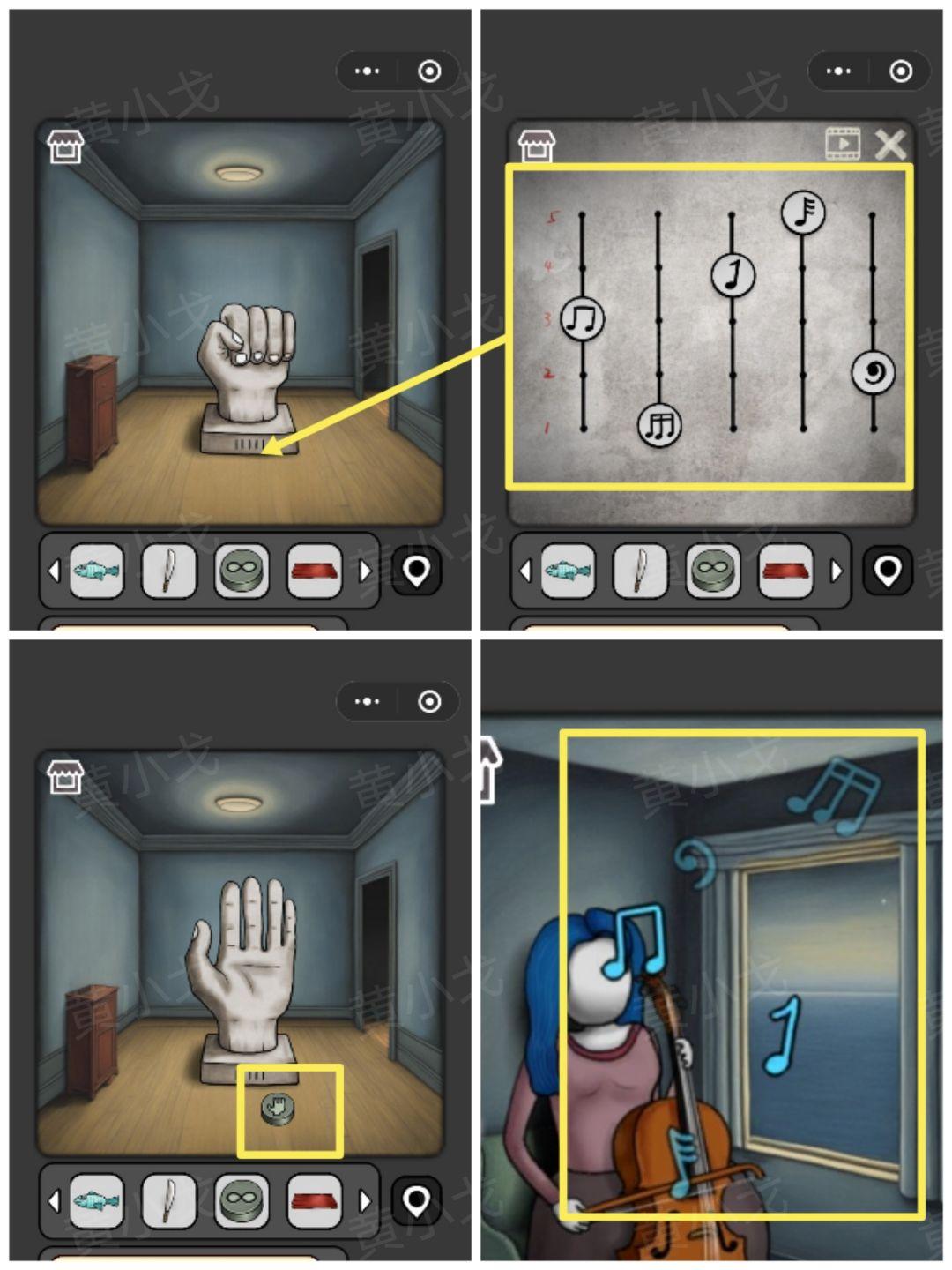 22.拿【拉弦】和【乐谱】给女孩,获得音符出现顺序线索