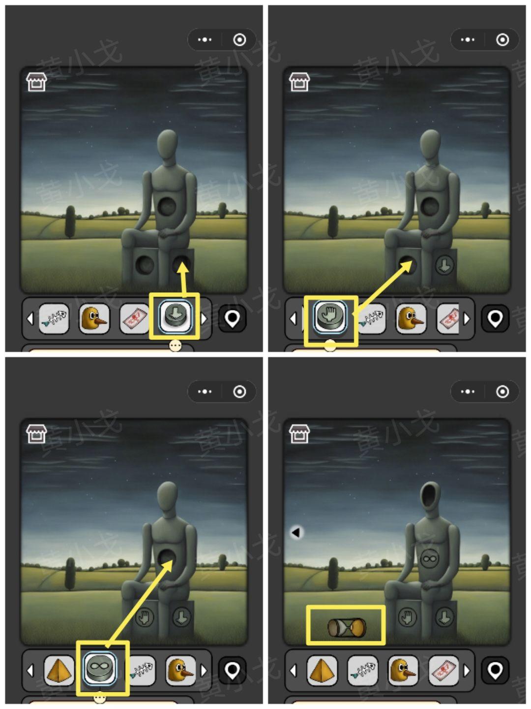 28.把三个【按钮】嵌入雕塑身上的凹槽中,获得【沙漏】