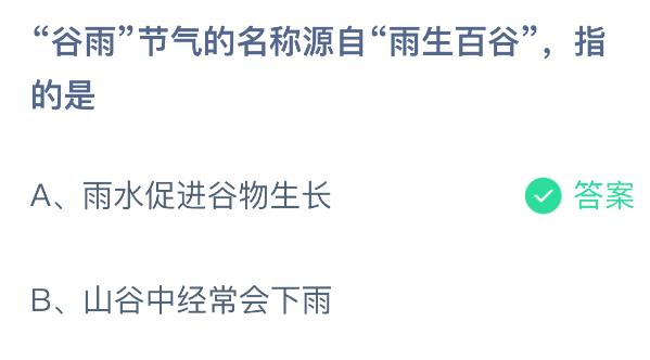 以上就是“谷雨”节气的名称源自“雨生百谷”,指的是?支付宝蚂蚁庄园2026年4月20日答案最新,更多相关攻略,请关注3dm手游网更新!