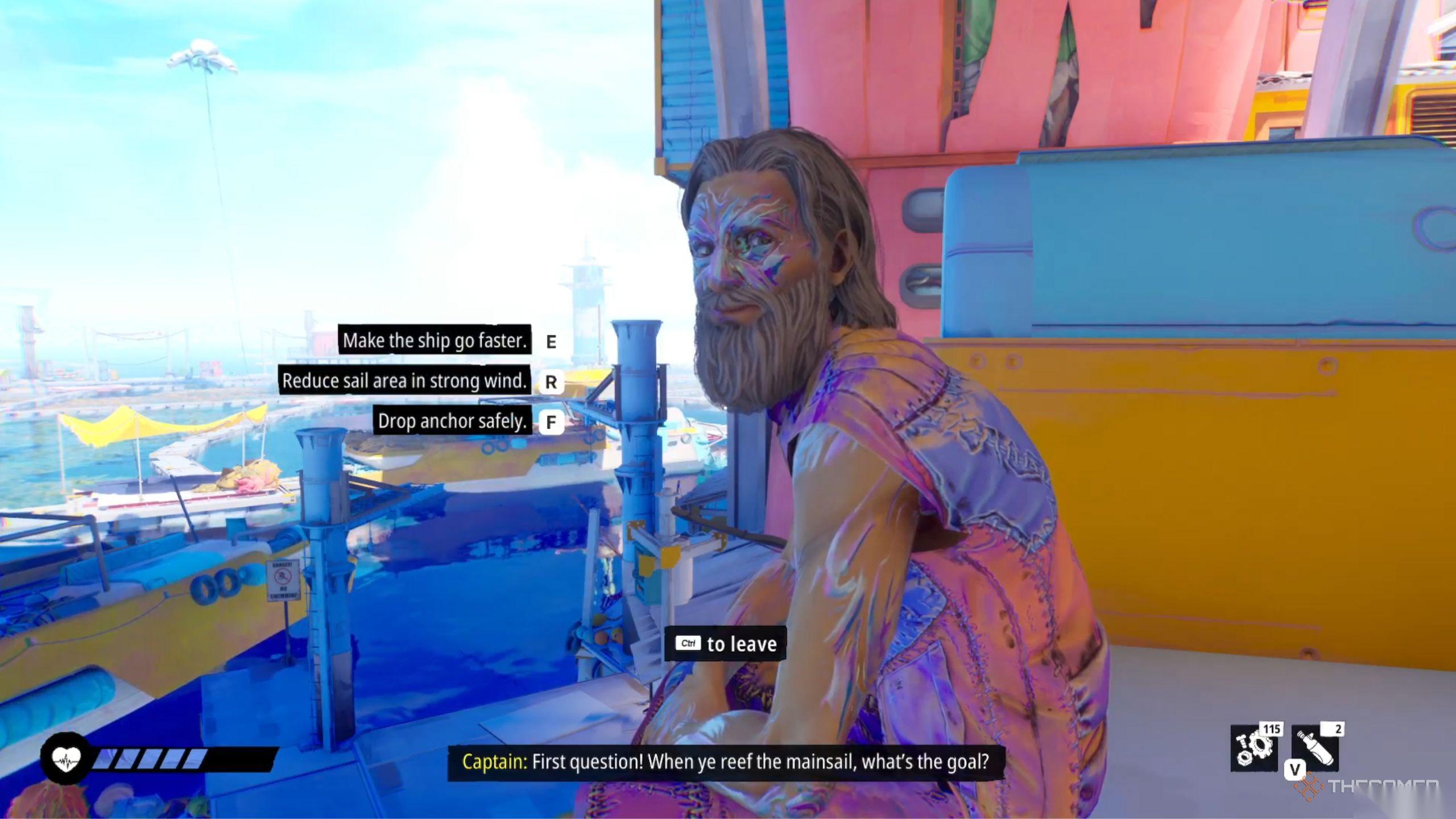 进入哨站后,你会看到一个人被推开,他的奥森(ozen)被偷了。这个人随后会慢慢走向右边的黄色房子。跟着他走上楼梯,你会看到更多通往屋顶的楼梯。到达这个屋顶,你就会看到船长坐在那里。