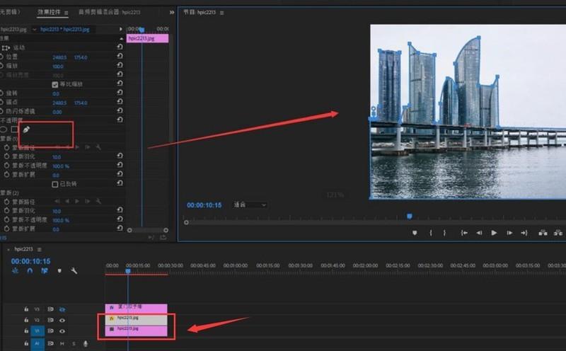 4.按照键盘的Alt键复制图片素材,修改复制层的不透明度,并用钢笔工具沿轮廓勾画建筑蒙版