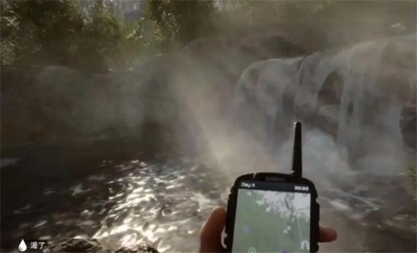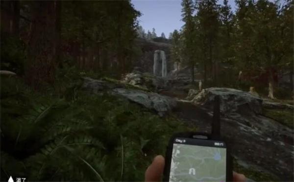 3、来到女野人可能刷新的第1个位置,如图所示的瀑布旁边,如果她不在,我们继续去下一个位置。
