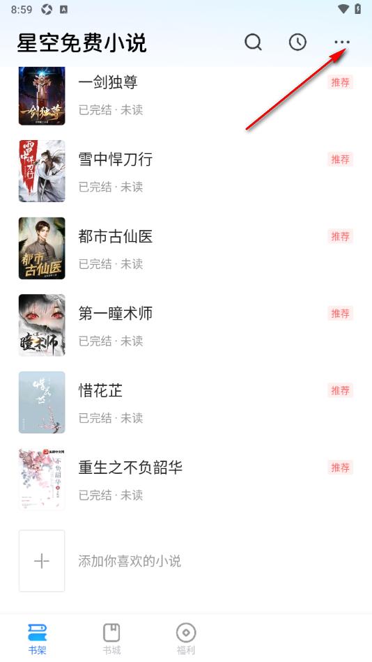 星空免费小说APP是一款手机上会使用到的阅读软件,相信很多用户总是会通过这款软件阅读喜欢的小说,该软件中提供的小说类型有恐怖、推理以及都市和玄幻等方面的小说,用户可以根据自己的阅读爱好来筛选小说,并且可以将喜欢的小说添加到书架中管理,便于后期查看,如果添加到书架中的书籍比较多,可以将其设置成宫格模式来显示,那么可以直观的找到自己想要的书籍信息,之后在书架中将顶部的“…”点击打开,选择切换宫格模式即可,具体的教程方法已经展示如下,快来看看下方步骤吧。