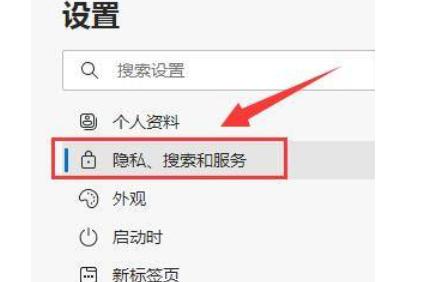 在“设置”界面左侧或顶部导航栏中,选择 “隐私、搜索和服务”。