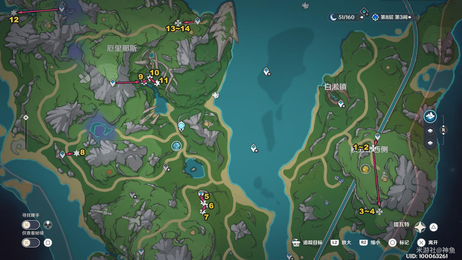 「柔灯铃」是枫丹特产,如果有林尼的话最好带上,可在小地图上看到枫丹特产的位置。